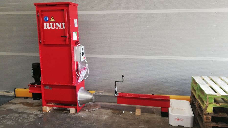 Die Testergebnisse waren zufriedenstellend und Supermercati Tosano beschloss, in jeder Filiale einen Verdichter zu installieren. Die SK120 für Supermercati Tosano wurden mit einem Sondertrichter ausgestattet, der eine größere Menge an Fischkisten enthalten kann als der RUNI SK120 Standardtrichter.