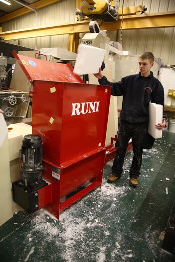 SK120 ermöglicht einem kleineren englischen Industriebetrieb hohe Einsparungen. Selbst mit dem kleinsten RUNI-Verdichter wird hier der EPS-Abfall wertvoll, und gleichzeitig konnte das Unternehmen seine Probleme mit unkomprimiertem EPS in den Griff bekommen.