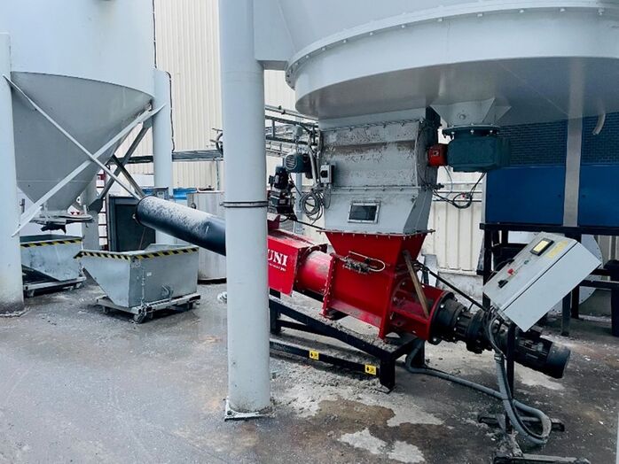 RUNI Verdichtungssystem Typ SK370 als Erfassungselement und Staubtransport für den Staubaustrag einer Entstaubungsanlage bei einem deutschen Entsorgungsunternehmen für Abfallsortierung/Recycling von Rohstoffen. Der SK370 ist versiegelt. Aus diesem Grund, der SK370 ist geeignet für diesem Zweck.