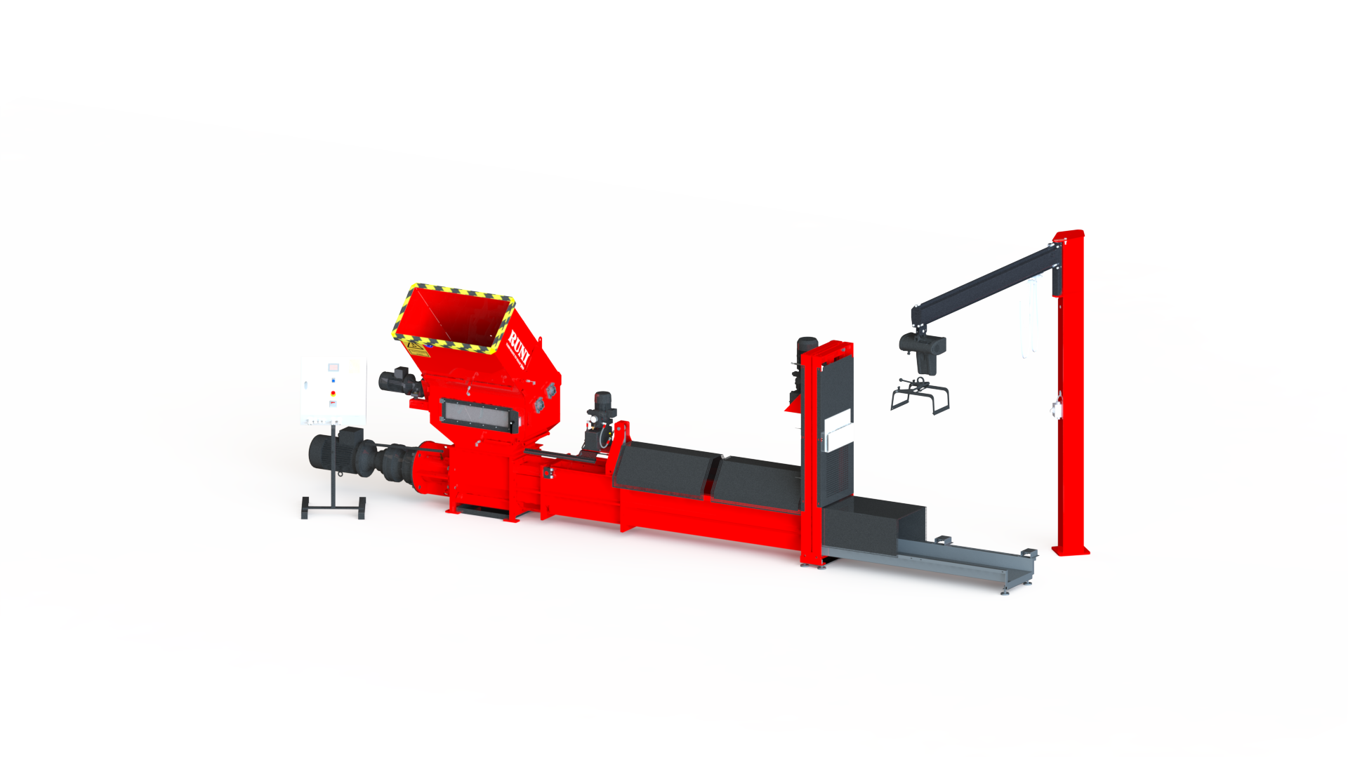 Die RUNI-Maschinen sind modular aufgebaut. Die gleiche Basiseinheit, die in drei verschiedenen Größen erhältlich ist, bildet das Fundament jeder RUNI-Schneckenverdichter. Der Trichter, die Ausschubrinne, eventueller Vorbrecher etc. werden aufgabenspezifisch ausgesucht und den individuellen Wünschen des Kunden angepasst.