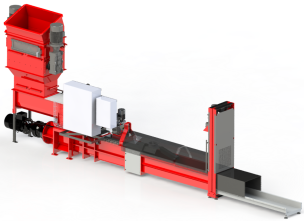 Der RUNI SK370 kann manuell und über ein Förderband beschickt werden. Das Material wird in einen Trichter mit einem eingebauten Heavy Duty Vorbrecher eingeführt. Der Trichter ist dank Fotosensoren mit einer automatischen Start- und Stoppfunktion ausgestattet. Das bedeutet, dass die Maschine während des Betriebs nur minimal bedient werden muss und für Ihre Mitarbeiter absolut sicher zu handhaben ist.