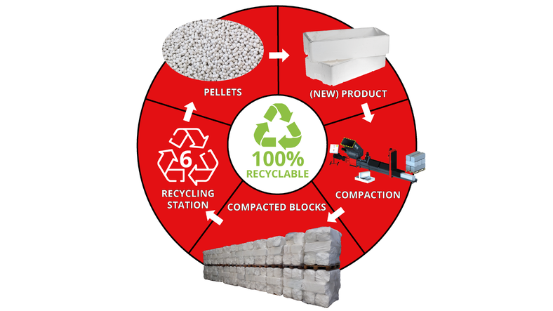 EPS ist biologisch nicht abbaubar und wird allzu oft in Verbrennungsanlagen entsorgt. Styropor ist jedoch zu 100 % recycelbar, und verdichteter EPS-Abfall kann sogar verkauft werden. So kann aus sperrigem Abfall, der wegen Lager- und Transportkosten mit hohen Entsorgungskosten verbunden ist, eine Einnahmequelle werden.