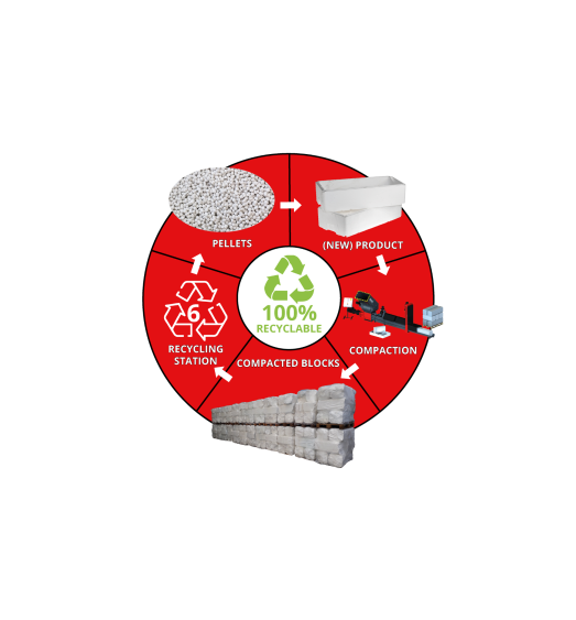 EPS ist biologisch nicht abbaubar und wird allzu oft in Verbrennungsanlagen entsorgt. Styropor ist jedoch zu 100 % recycelbar, und verdichteter EPS-Abfall kann sogar verkauft werden. So kann aus sperrigem Abfall, der wegen Lager- und Transportkosten mit hohen Entsorgungskosten verbunden ist, eine Einnahmequelle werden.
